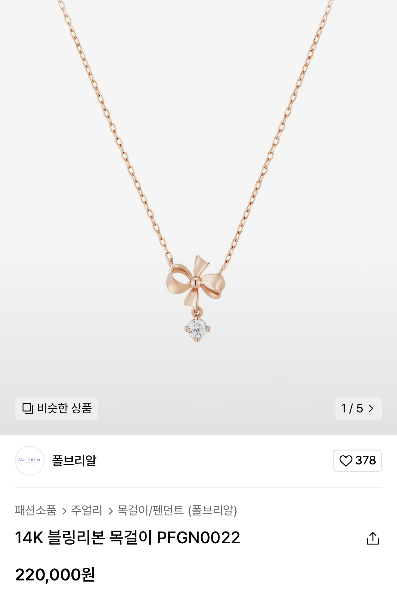 폴브리알 14k 리본 목걸이