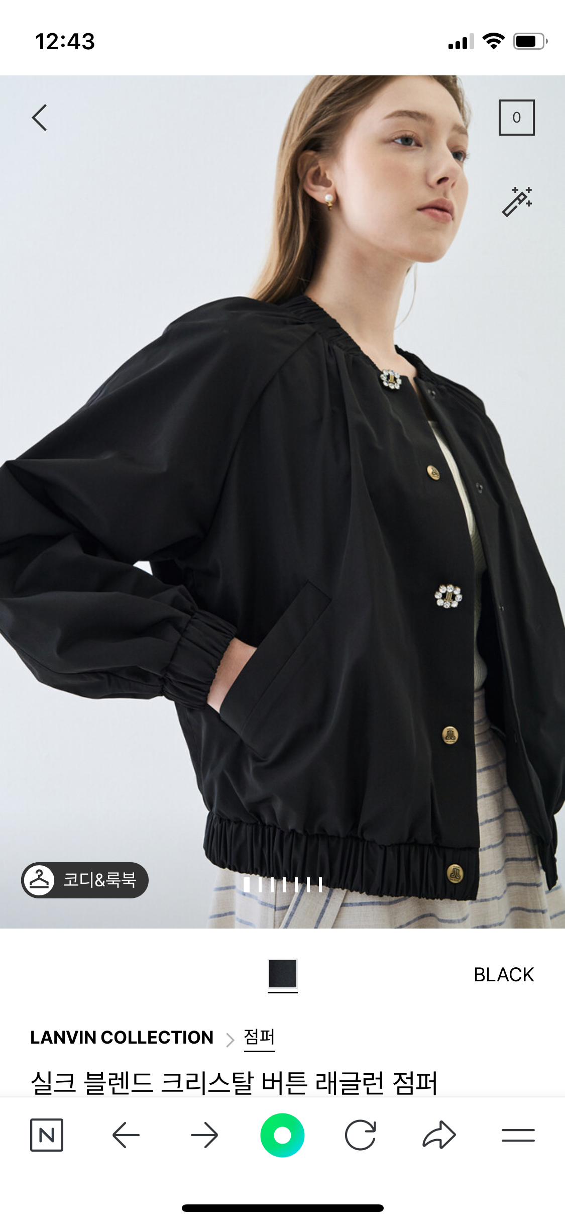 랑방 컬렉션 실크 블렌드 크리스탈 버튼 래글런 점퍼