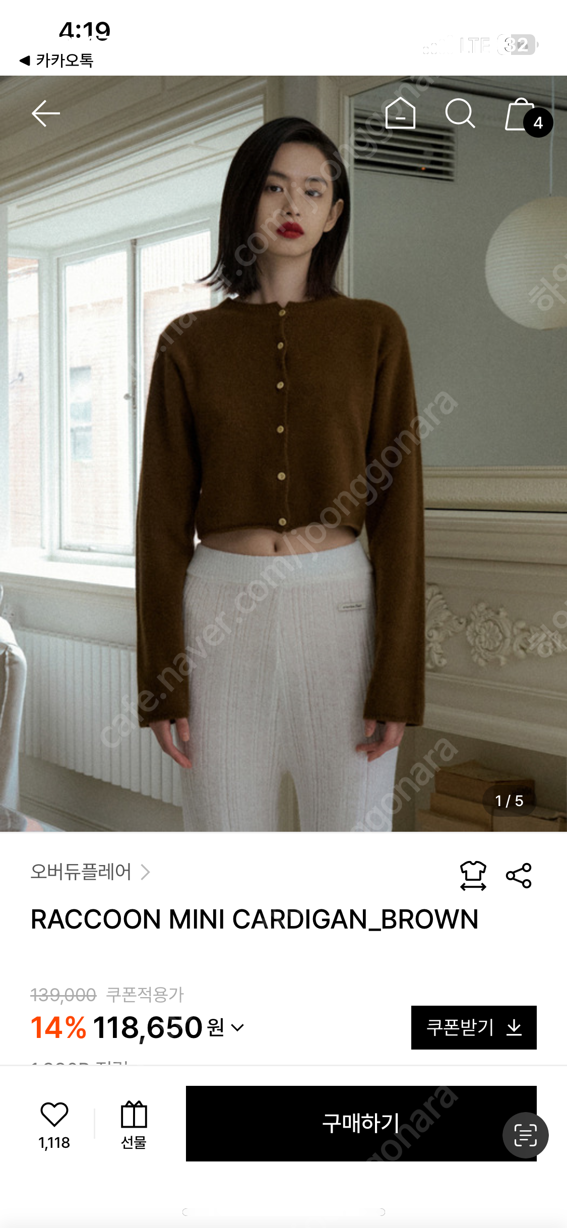 오버듀플레어 가디건