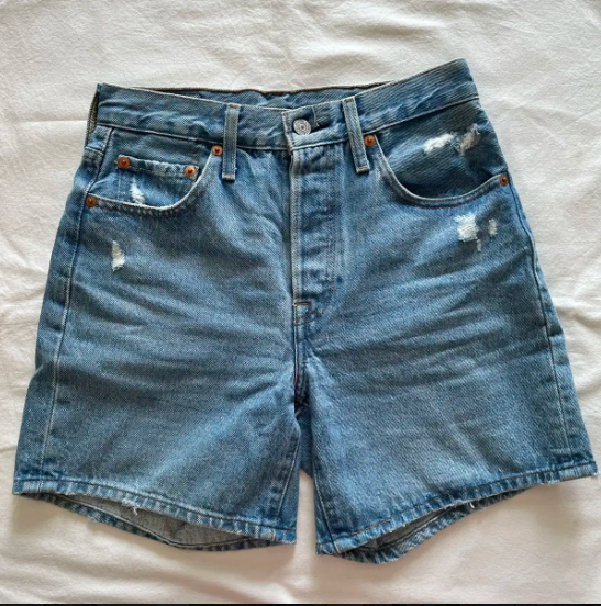리바이스 501 오리지널 하이라이즈 미드타이 진 쇼츠